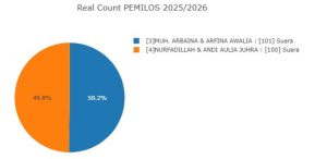 Hasil perhitungan e-voting akhirnya menetapkan bahwa pasangan calon nomor urut 1, Muh. Arbaina dan Arfina Awalia, resmi terpilih sebagai Ketua dan Wakil Ketua OSIS SMKN 3 Wajo periode 2025/2026 dengan perolehan 101 suara. Sementara itu, pasangan calon nomor urut 2, Nurfadillah dan Andi Aulia Juhra, memperoleh 100 suara. Selisih tipis satu suara ini menunjukkan betapa ketatnya persaingan dan besarnya antusiasme siswa dalam menentukan pilihan mereka.